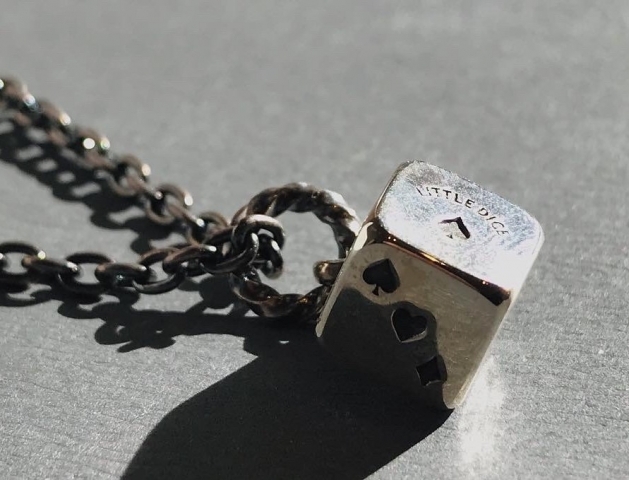 トランプのマークがデザインされたダイス(サイコロ)型ペンダント。