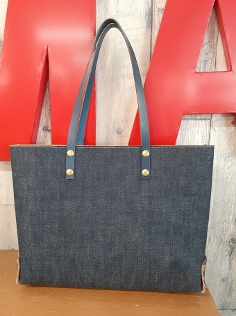 表はデニム、裏はレザーでつくられたトートバッグです!