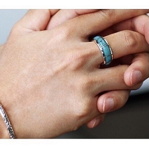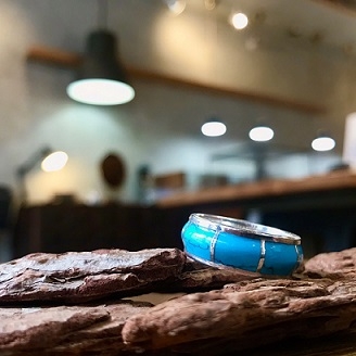 シンプルなボーダー柄のデザインとターコイズの清涼感あるカラーが爽やかな印象を与えてくれるシルバーリングです。