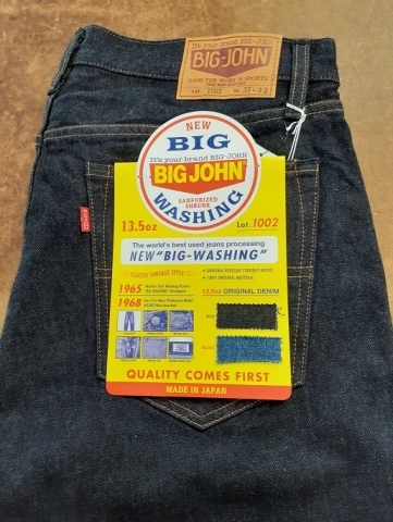 児島にあるSHOWAという生地作りから加工まで行う会社とのコラボにより誕生したジーンズになります。またBIGJOHNが世界ではじめてジーンズを洗って販売した時のモデルの名前がBIGWASH