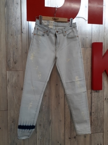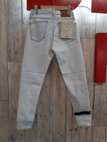 淡いお色味のデニム地にペイントが施されとてもさわやかな印象のジーンズです。
