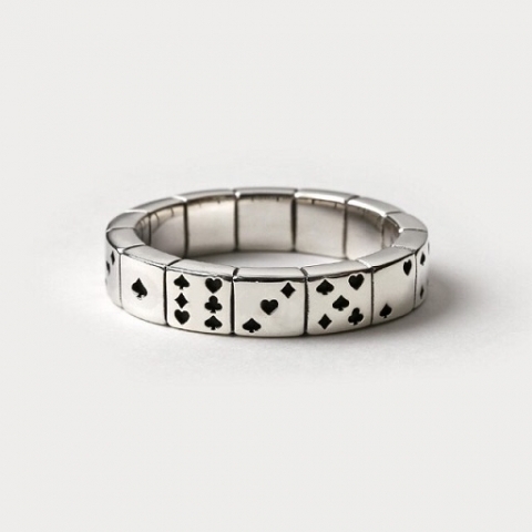 ダイスの目には丸のかわりにトランプマークを彫金しています。