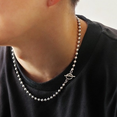 マンテルデザインの留め具がアクセントのボールチェーンネックレス。