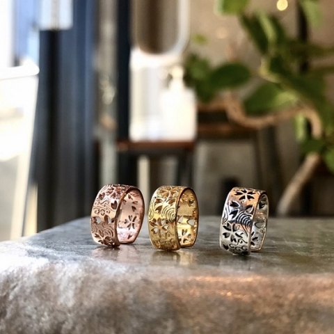 表面に無数の桜と花びらの透かし加工を施した和テイスト溢れるデザインのイヤーカフです。