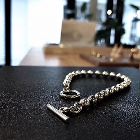 マンテルデザインの留め具がアクセントのボールチェーンブレスレット。