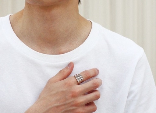 側面は艶やかな鏡面仕上げで大人の上品さがあり、堂々としながら凛とした雰囲気も兼ね備えたリングです。