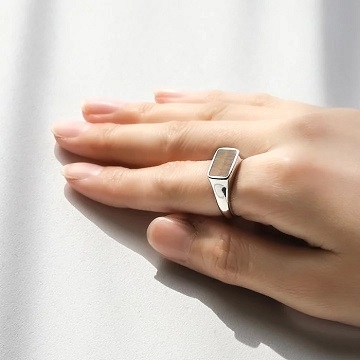 オニキス(中央)、タイガーアイ(左)、マラカイト(右)の3種類の天然石を使った細めのシグネットリング。