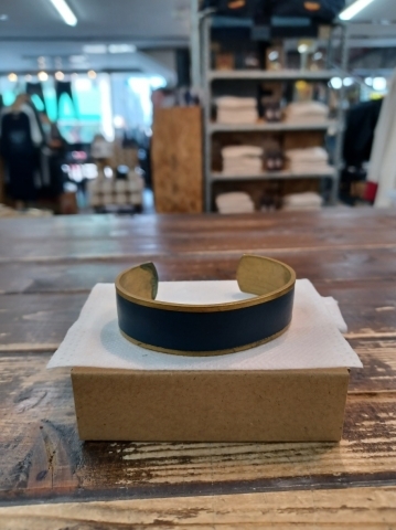 レザーと真鍮製のレールバングルになっております。