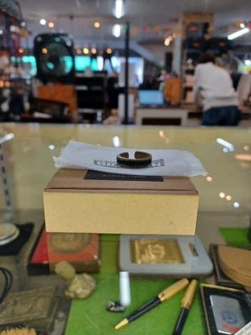 デニム生地と真鍮製のレールリングになっております。