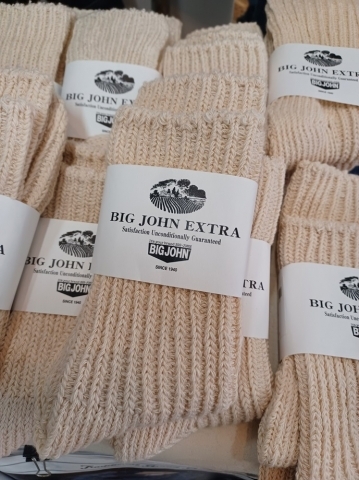 xxxxEXTRAの6番糸を5本引き揃え、極太糸を作成しローゲージで編んだ靴下です。