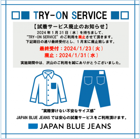 【試着サービス(TRY-ON SERVICE)廃止のお知らせ】