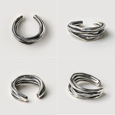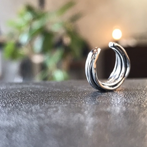 ラインが重なり合ったデザインのイヤーカフ。