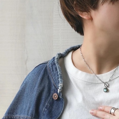 細めのチェーンが女性らしく、光の加減で色の見え方が変わる天然石とのバランスが◎