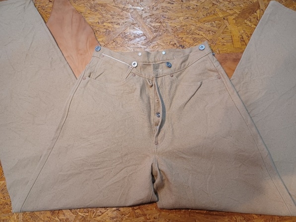 精紡は日本で稼働する最古の旧式精紡機である「石川台」で自然なムラ糸を作られており、9号帆布相当の生地になりますが自然な生地感により穿きやすくなっております。