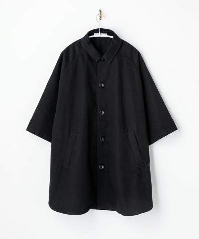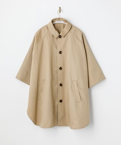 ハリ感のあるしっかりとした風合いのチノに撥水加工を施したポンチョ型ジャケット。