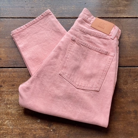 ピンクカラーは製品染めではなく、経糸をピンクカラーに硫化染めした糸を使用しています。