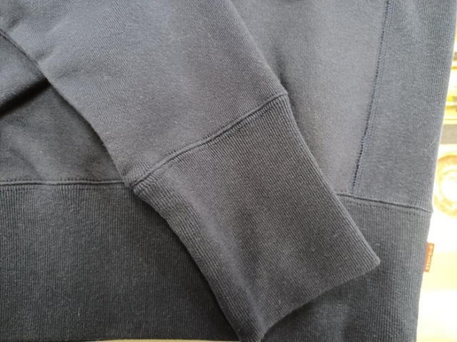 和歌山県にある創業1907年老舗の㈱森下メリヤス様で糸からオリジナルで作った14OZ肉厚でしっかりした裏毛ニット。脇に切り返しをつけることで丸みを持たせ、前Vガゼットやリブ長はビンテージ使用。フラッドシーマで凹凸感を減らし綺麗に仕上げました!!