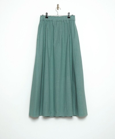 ダウンプルーフ素材を使用したウエスト周りにギャザーの入ったロングスカート。