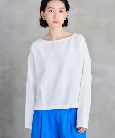 着丈が少し短めのシルエットですっきりと着こなせるスモックシャツ。