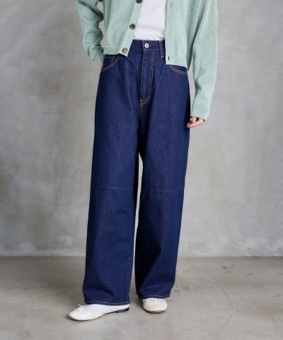 空紡糸を使ったドライタッチな質感が特徴のワイドジーンズ。