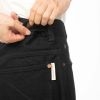 ウエスト帯に取り付けたアジャスタータブでデザイン性をプラスしつつウエストのサイズ調節も可能