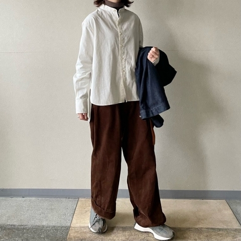 様々なシーンで活躍してくれるバンドカラーシャツです。