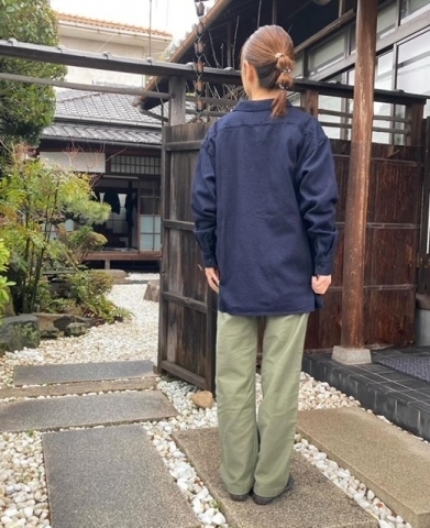 軽い生地感でシャツとしてはもちろん羽織としても使いやすい一着です。