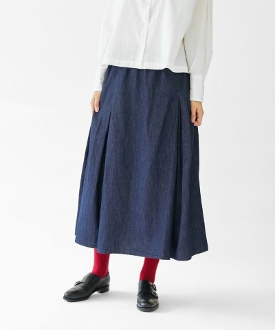 オールシーズン着用できる、着回しに便利なデニムスカート。