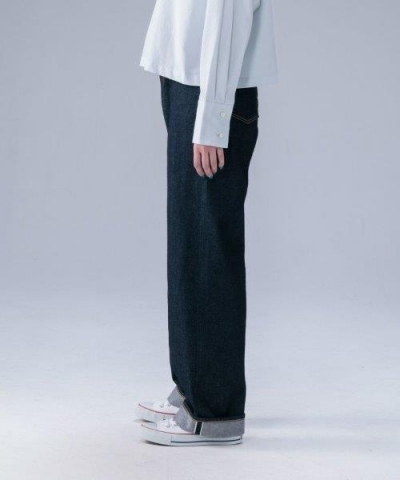 縦のラインがすっきり見えるワイドストレートシルエット。