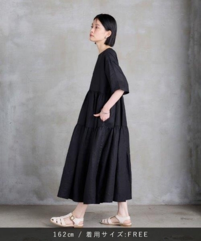 1枚で存在感のあるデザインのティアードワンピース。