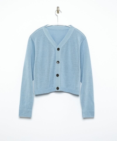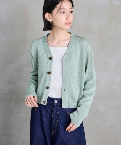 ショート丈でボックスシルエットのVネックカーディガン。