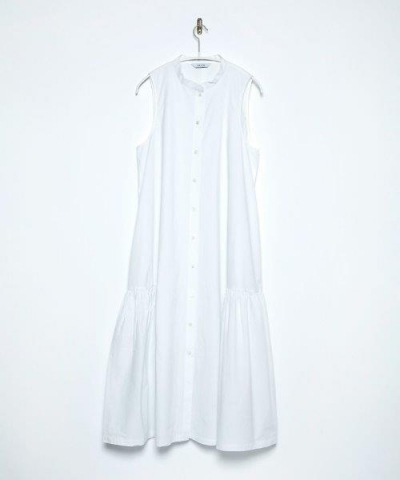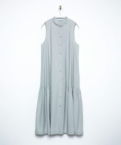 サイドにギャザーのアクセントを入れ、ふんわりとした広がりを持たせつつもタテのラインが強調されたデザイン。