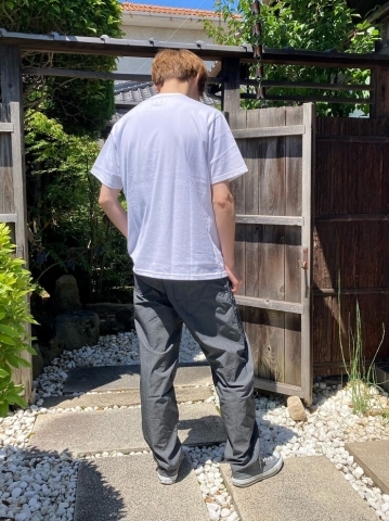 股上とお尻周りにゆとりを持たせていますが、裾に向かって絞りをかけることで
