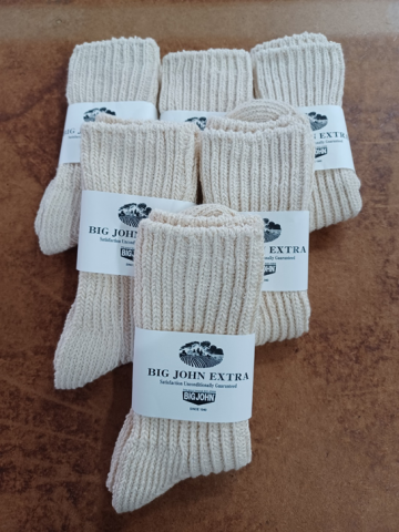 xxxxEXTRAの6番糸を5本引き揃え、極太糸を作成しローゲージで編んだ靴下です。