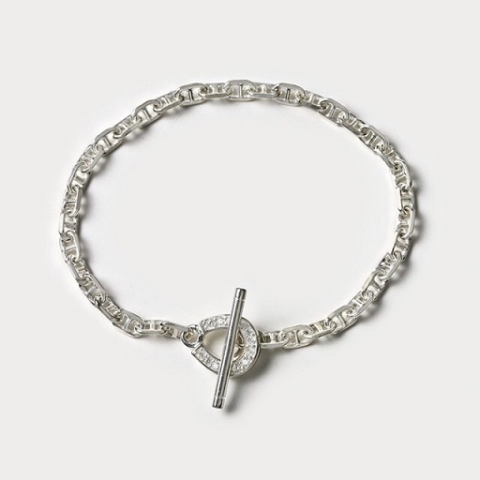 細めのチェーンにジルコニアが輝くホースシューがアクセントのブレスレットです。