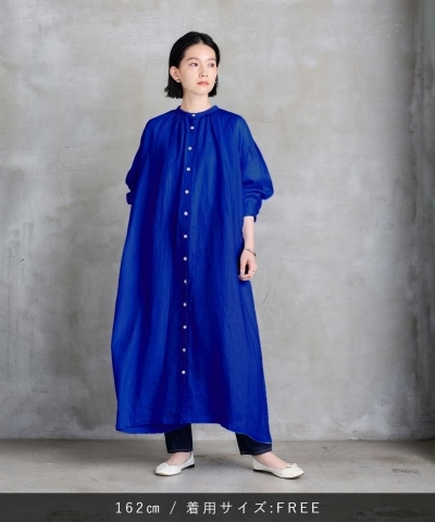 首周りからギャザーを入れて、柔らかなドレープ感が魅力のロングワンピース。