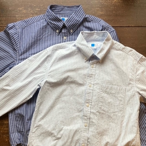 新作のストライプ柄ボタンダウンシャツ、人気です!