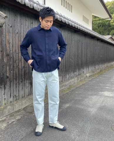 刺子のような風合いを持ちつつ、夏場でも着られるような生地感のシャツジャケット。