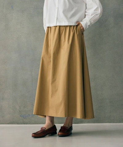 たっぷりのギャザー入りで、ふわっと広がるAラインシルエットのスカート。