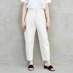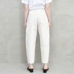 脚のラインを拾わない、ゆるやかなテーパードラインとアンクル丈で女性らしく履いていただけます。
