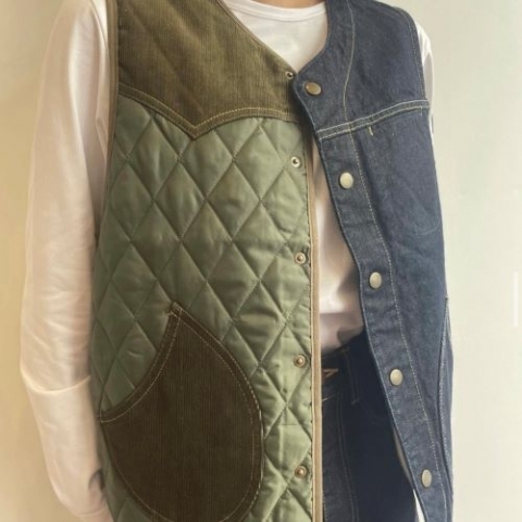 【バイカラーベスト カーキ×デニム】✨