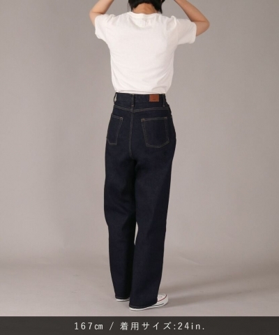 深い股上と女性らしい丸みのあるヒップ回りが特徴のハイウエストルーズ。