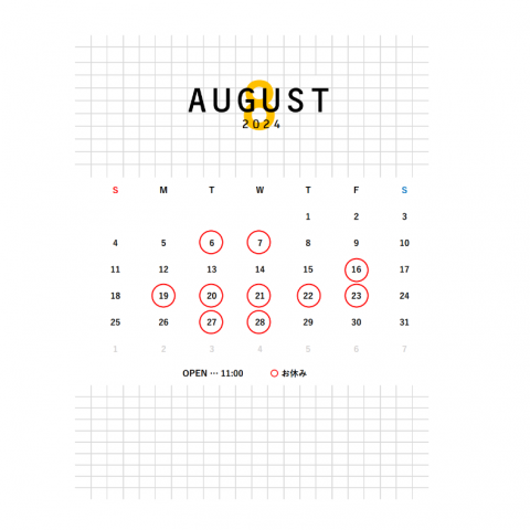さて今月はお盆のシーズンという事もあり、当店も通常のスケジュールとは異なる営業となります