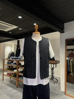 反応染めした刺し子生地を使用したミリタリーテイストのベスト!