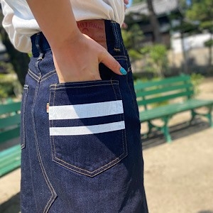 ジーンズと同様に、色落ちを楽しめるデニムの巻きスカート、ございます。