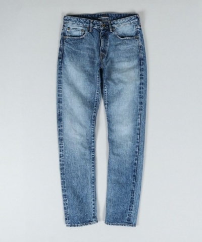 淡いフェード感のあるインディゴらしい爽やかな経年変化を児島の加工技術で表現しました。