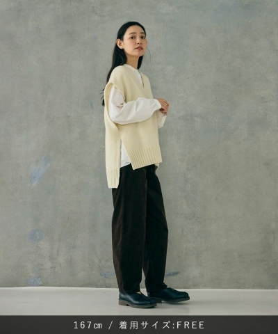 カジュアルな雰囲気に仕上げられていますが、細い畝のため綺麗な雰囲気で着られます。