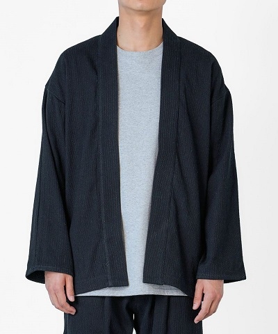 フリーサイズでシンプルなデザインながら大人モダンなこなれた雰囲気を味わえる刺子の羽織。