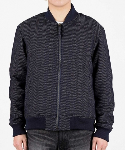 【NEW】Herringbone Tweed Denim Bomber Jacket