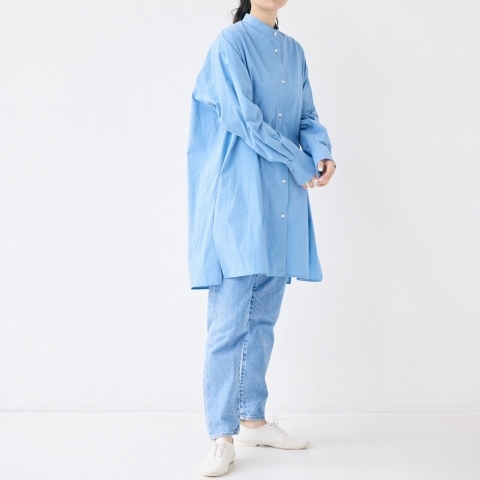 ヴィンテージウォッシュ加工を施し、全体のトーンを落とした鮮やかなブルーが映えるジーンズです。